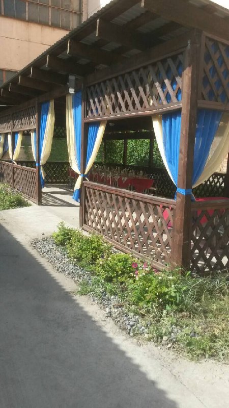 Множество горячих блюд, пельмешки, свежие салатики, шашлычок и шаурма прямо с мангала.