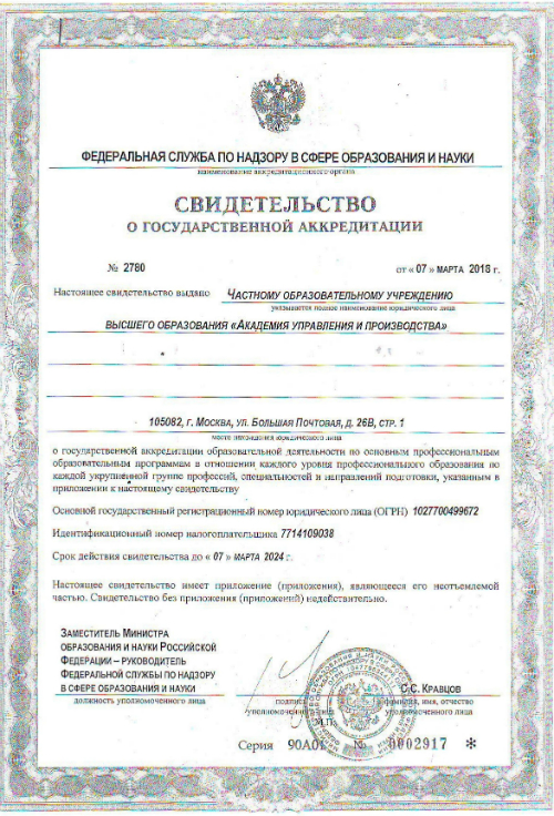Академия управления и производства приглашает абитуриентов на обучение. Форма обучения вуза: дистанционное, заочная, очная, очно-заочная. Уровень подготовки: магистратура, бакалавриат. Направления подготовки: электроэнергетика, экономика, менеджмент,государственное и муниципальное управление, педагогическое образование , психология.